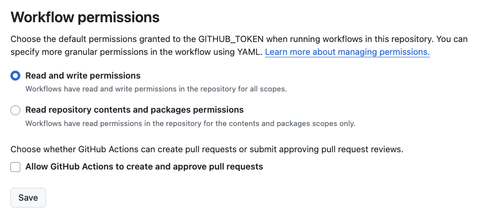 tenha permissão de escrita. Você pode verificar isso nas configurações do repositório, na seção "Actions" e depois em "General". Certifique-se de que a opção "Workflow permissions" esteja definida como "Read and write permissions".